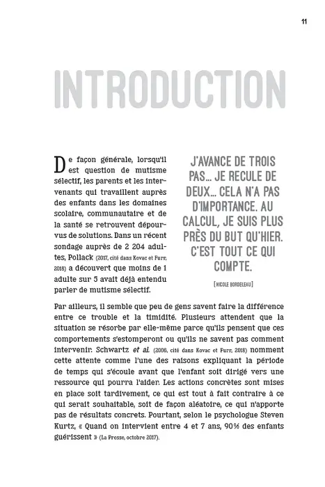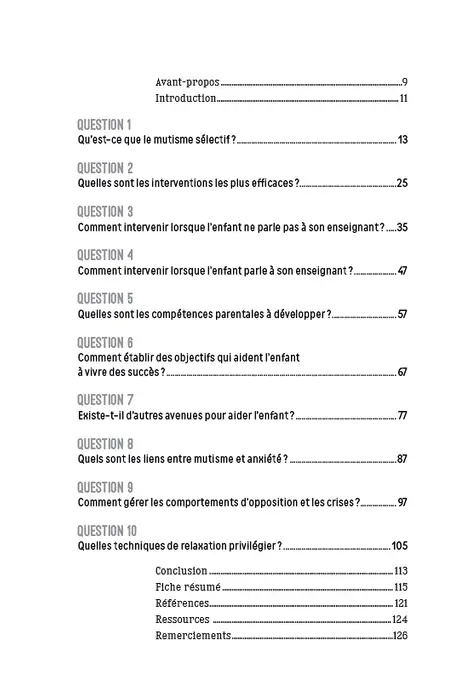 Ce guide essentiel permettra aux parents, aux enseignants et aux intervenants de bien comprendre les enjeux qui affectent les enfants atteints de mutisme sélectif et d’acquérir des stratégies d’intervention concrètes, qui permettront d’intervenir de manière sensible et efficace, tant à l’école ou en milieu de garde qu’à la maison.