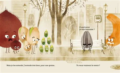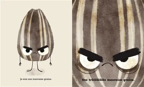 La mauvaise graine, c’est une graine de tournesol, une pipasol, qui se comporte comme une terreur en société. Mais elle n’a pas toujours été une peste malpolie. Elle a vécu en famille au sein de sa maman tournesol jusqu’au jour où les choses ont mal tourné.